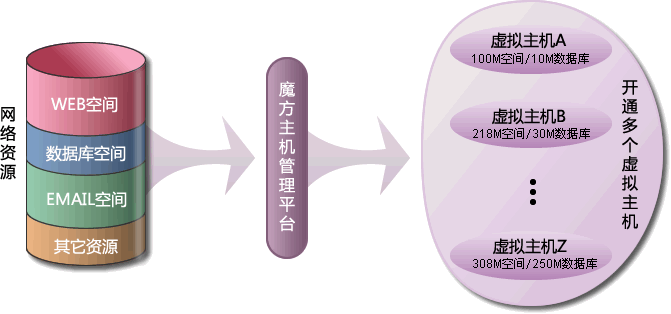 魔方主机是春红科技在虚拟主机技术基础上,最近推出的一个主机新产品。简单的来说,魔方主机是一个虚拟主机合集产品,它只用一次购买网络资源(如WEB空间容量、IIS链数、数据库空间容量等),即可开通多个虚拟主机,并可随时自由分配每个虚拟主机的可用资源。